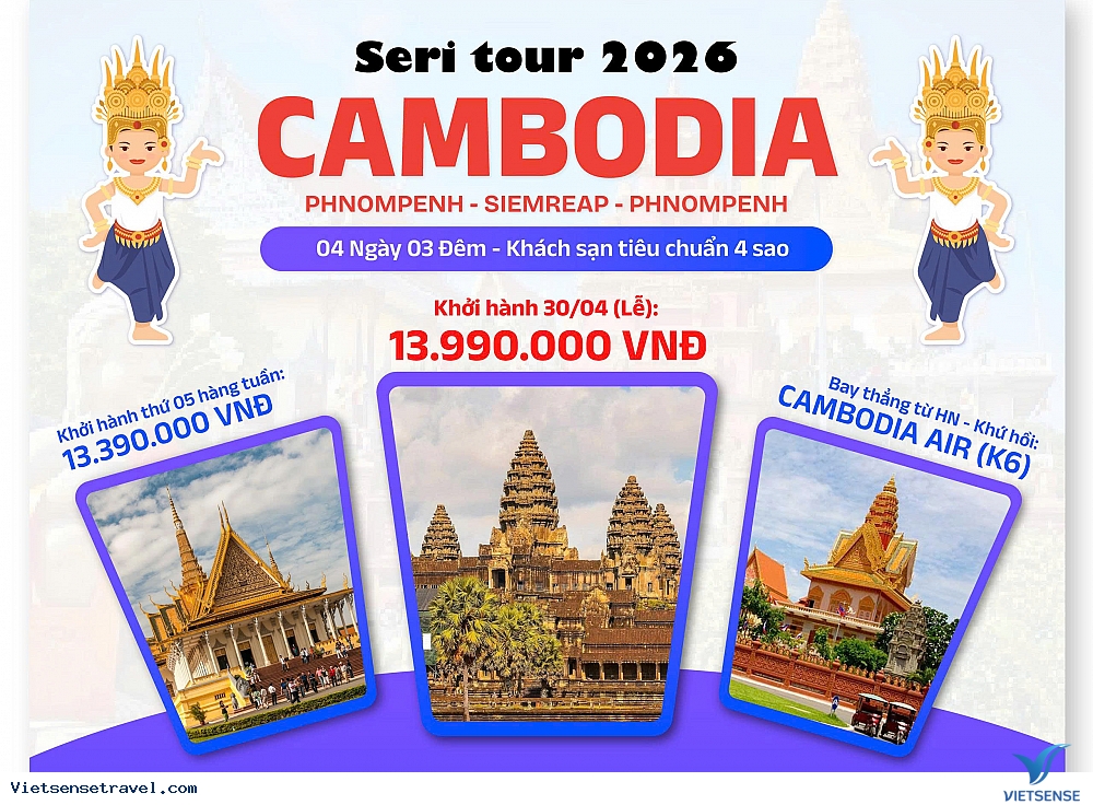 Tour Campuchia Dịp Tết Âm Lịch Bính Ngọ 2026 (Đường Bay)
